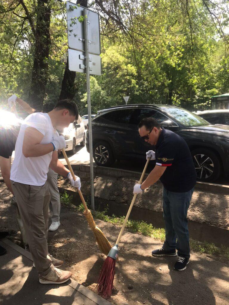 As part of the eco–activity dedicated to the "Taza Kazakhstan" program and the "Almaty is our common Home" campaign, workers carried out sanitary cleaning of the territory of Amangeldy Street (from Tole bi Street to Kazybek bi Street) in the Almaly district of the city.