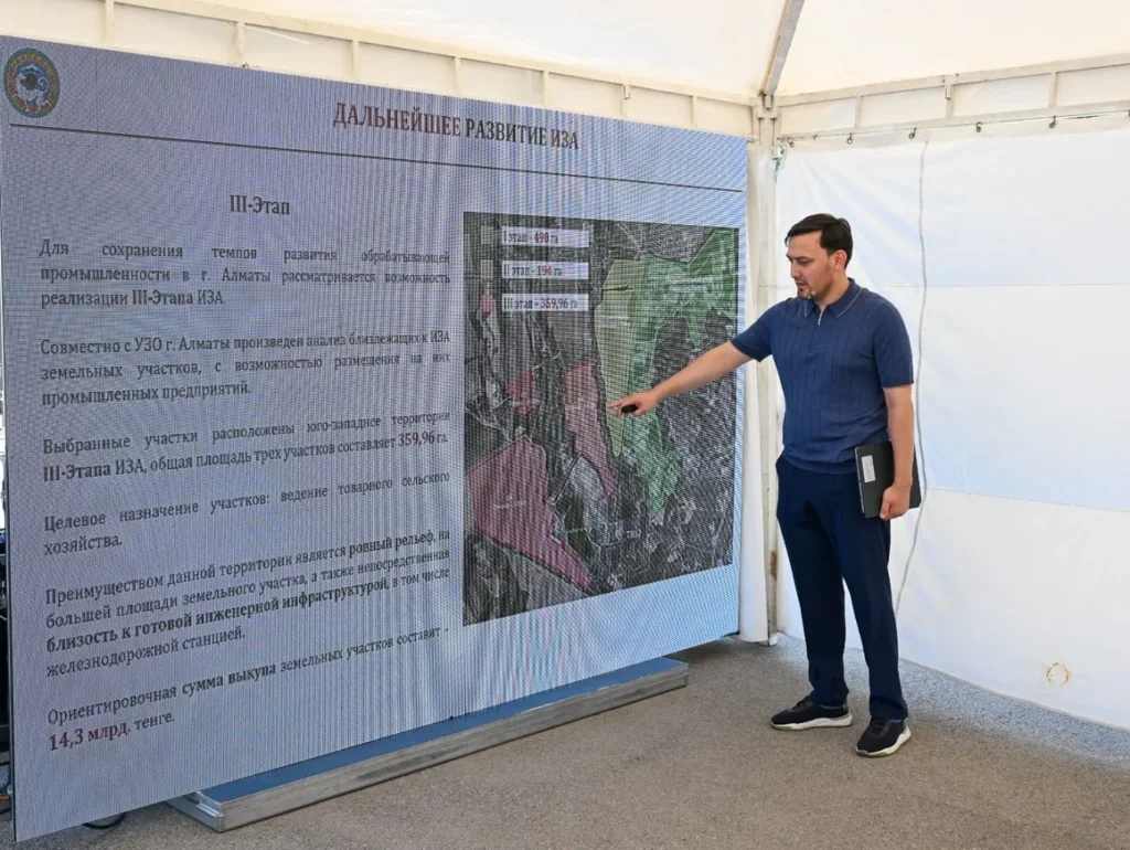 Аким Алматы Дархан Сатыбалды посетил Индустриальную зону города, где ознакомился с работой предприятий, провёл совещание по вопросам её дальнейшего развития и обозначил ключевые приоритеты - эффективность производств, рациональное использование земли, развитие инфраструктуры и привлечение инвестиций.